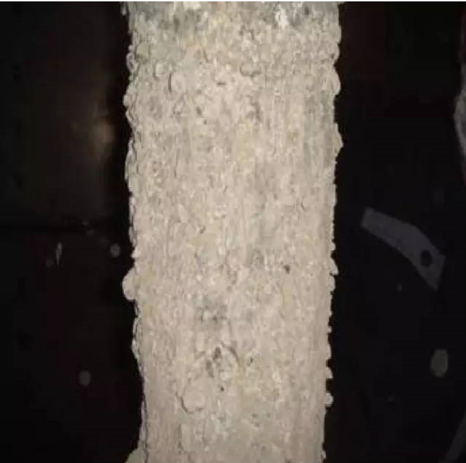 右图为某工业垃圾焚烧除尘器中滤袋酸结露造成糊袋的照片. 该除尘器运行温度稳定在150℃左右,但